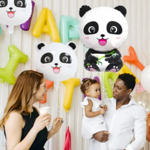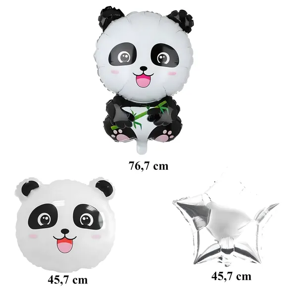 Cuki panda és csillag alakú fólia lufik, amelyekkel pillanatok alatt látványos, állatos szülinapi dekorációt varázsolhatsz; strapabíró fóliából készültek, így többször is felhasználhatók.