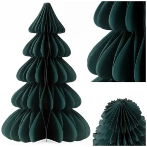 Papír karácsonyi dekoráció fenyőfa alakban, 30 cm, sötétzöld