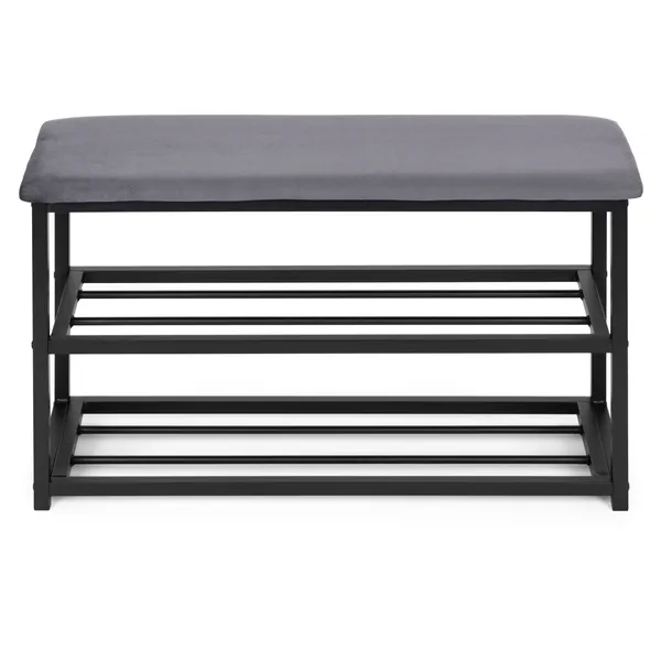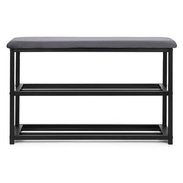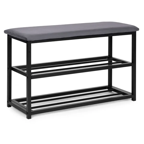 Rendezd az előszobát egy kényelmes ülőkés cipőtartó paddal: a puha, bársony kárpitozás megkönnyíti a cipőfelvételt, a 2 nyitott polc pedig segít átláthatóan tárolni a mindennap használt lábbeliket. Stabil acélváza tartós, a modern forma pedig többféle enteriőrbe illik.