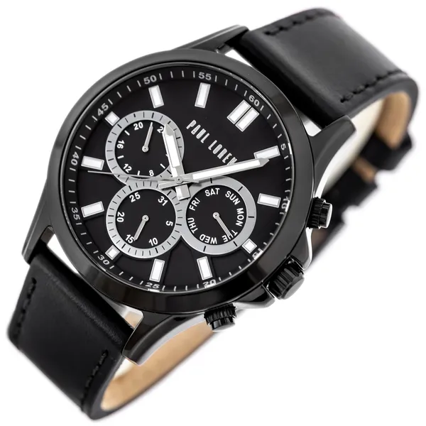 A Paul Lorens PL8071A2-1A5 férfi karóra az elegáns megjelenést, a praktikus funkciókat és a modern stílust ötvözi. Kiváló választás azoknak a férfiaknak, akik megbízható, igényesen kidolgozott órát keresnek mindennapi viseletre és alkalmi megjelenéshez is. A fekete számlap és a fekete bőrszíj határozott, férfias összhatást teremt, amely könnyen illeszkedik üzleti és hétköznapi öltözékhez egyaránt.