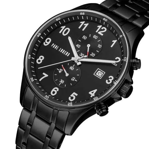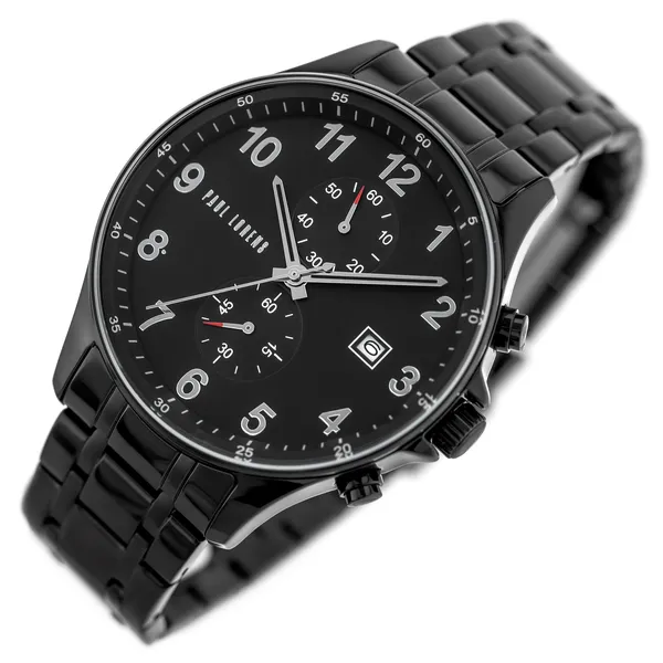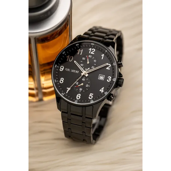 Paul Lorens férfi karóra fekete acél szíjjal, kronográffal