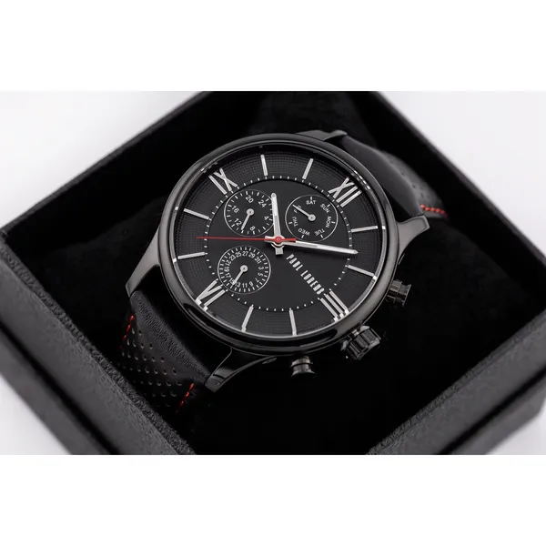 Az olasz eleganciát idéző karóra japán kvarc szerkezettel és fekete bőr szíjjal biztosít pontos időmérést, a dupla dátumkijelző és WR30 vízállóság pedig mindennapi praktikummal teszi teljessé stílusát. Az antiallergén IPB bevonat és az ajándék díszdoboz extra értéket kínál.