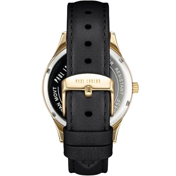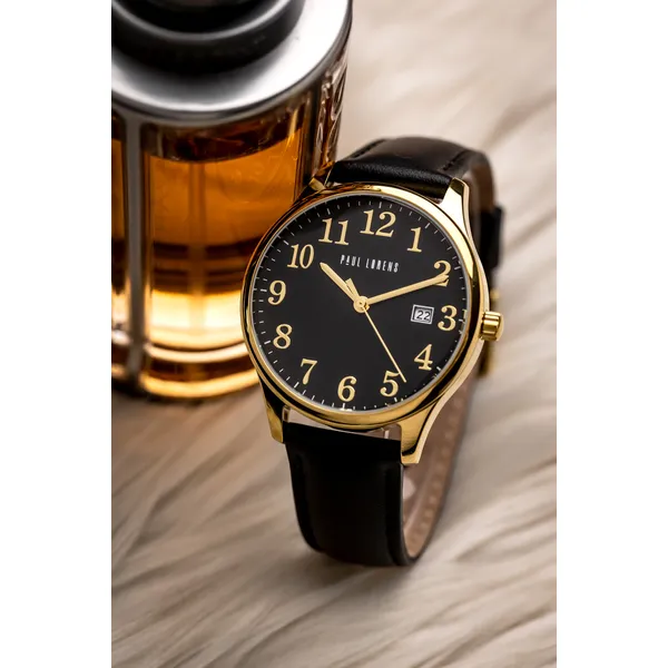 Paul Lorens férfi karóra fekete bőrszíjjal, arany-fekete, 41 mm