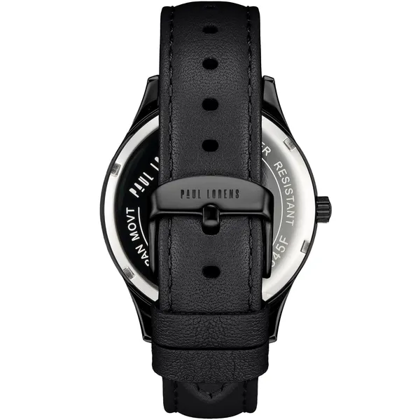 A Paul Lorens PL20016A-1A3 férfi karóra az elegáns megjelenést és a megbízható működést ötvözi. Olasz ihletésű formavilága, gondos kidolgozása és minőségi anyagai révén kiváló választás mindennapi viselethez és alkalmi öltözékhez is. A fekete számlap, az ezüstszínű indexek és a fekete bőrszíj időtálló, férfias összhatást teremtenek.