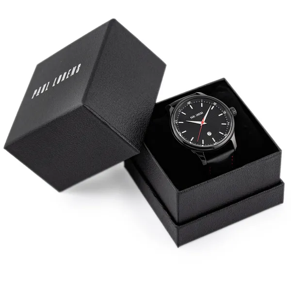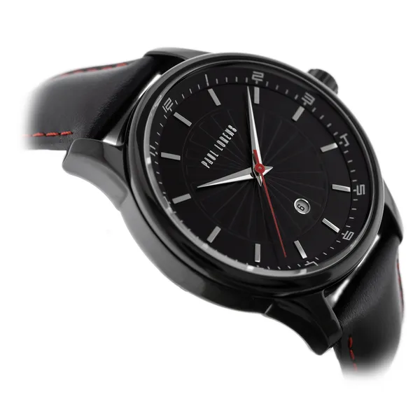 Paul Lorens férfi karóra, fekete bőrszíjjal, dátumos, 45 mm