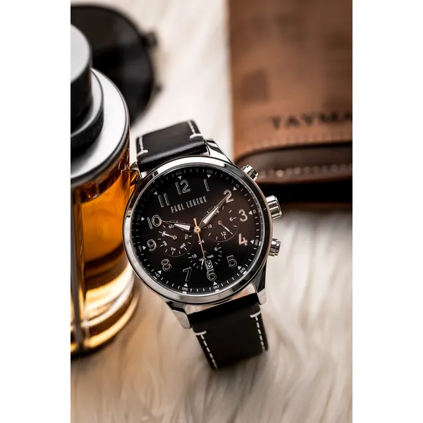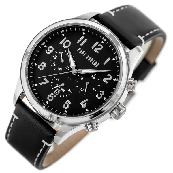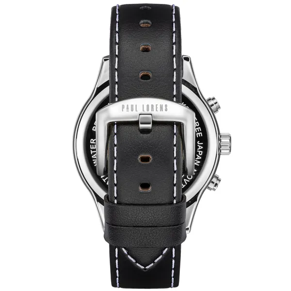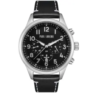 A Paul Lorens PL20011A-1A1 férfi karóra az elegáns megjelenést és a megbízható működést ötvözi. Olaszos stílusvilága, gondos kidolgozása és időtálló anyaghasználata miatt kiváló választás mindennapi viselethez és alkalmi öltözethez is. A fekete számlap, az ezüstszínű tok és a fekete, fehér varrású valódi bőrszíj harmonikus, férfias összhatást teremt.