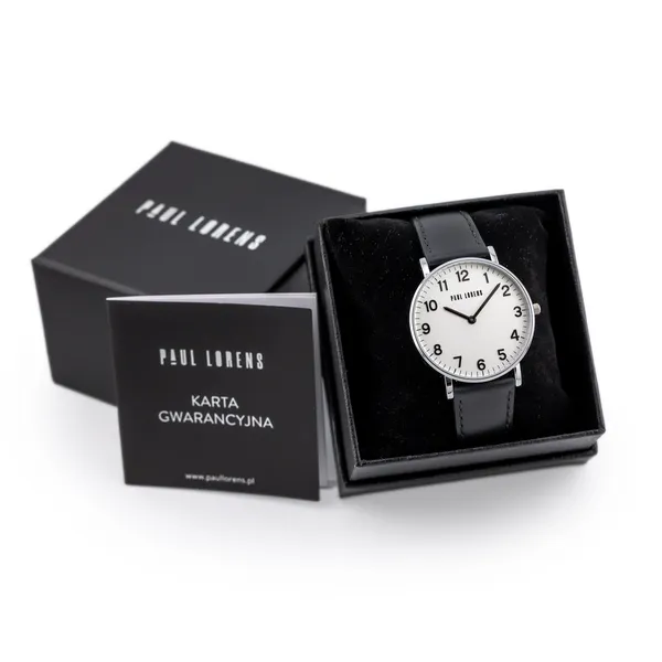 A Paul Lorens PL11989A5-3A1 férfi karóra elegáns és időtálló választás azoknak, akik a letisztult megjelenést és a kényelmes viseletet egyaránt fontosnak tartják. A fekete bőrszíj, az ezüstszínű tok és a hozzá illő ezüst számlap harmonikus összhatást teremt, így a modell jól illik hétköznapi és alkalmi öltözékhez is. A csomaghoz elegáns díszdoboz és ajándéktáska is tartozik, ezért ajándéknak is kiváló.