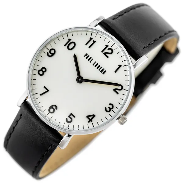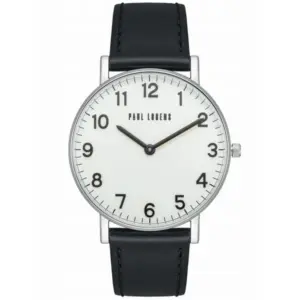 Paul Lorens férfi karóra fekete bőrszíjjal, ezüst számlappal