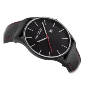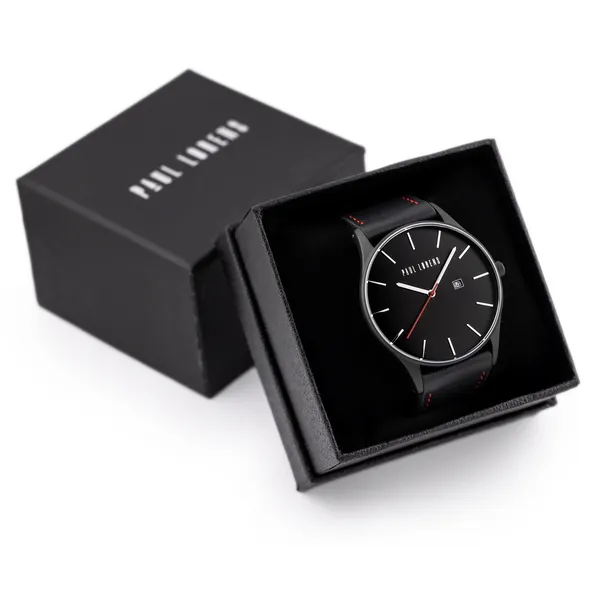 Paul Lorens férfi karóra, fekete bőrszíjjal, fekete számlap, 45 mm