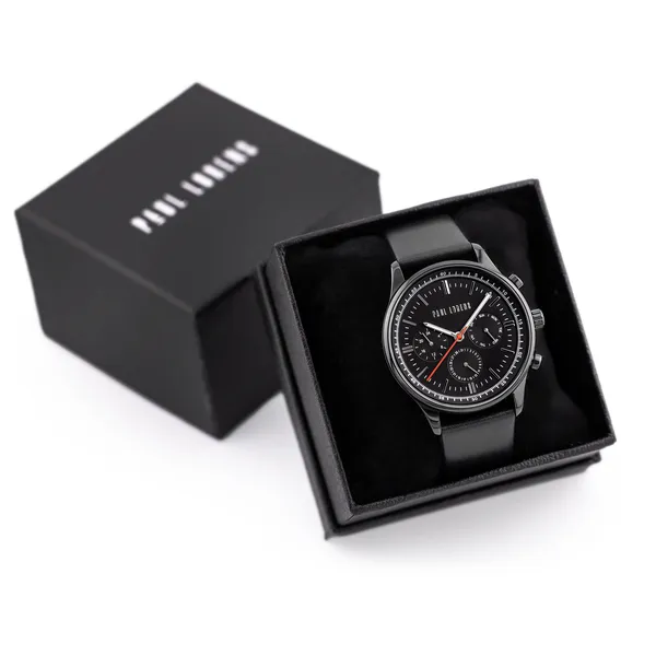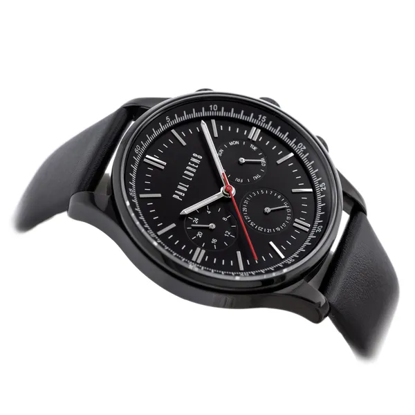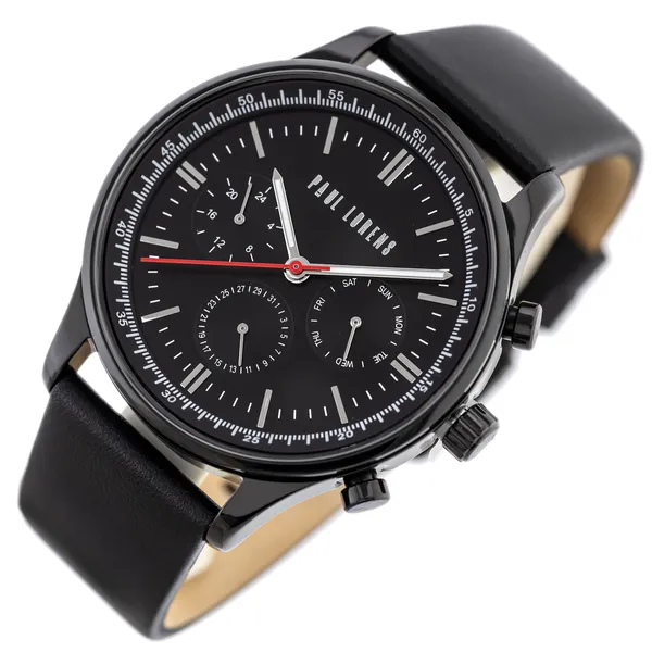 Paul Lorens férfi karóra fekete bőrszíjjal, fekete számlappal 44 mm