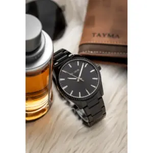 Elegáns, fekete kialakítású férfi karóra rozsdamentes acél szíjjal és megbízható japán kvarc szerkezettel. Kényelmes, tartós viselet a mindennapokra, amely díszdobozzal és ajándéktáskával érkezik.