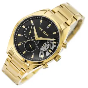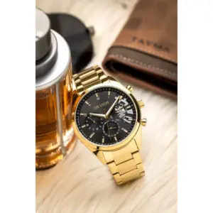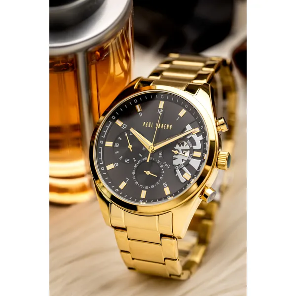 A Paul Lorens PL20003B-1D1 férfi karóra az elegáns megjelenést ötvözi a megbízható működéssel és a precíz kidolgozással. Klasszikus részletei és modern formavilága miatt ideális választás mindennapi viselethez és alkalmi öltözékhez is. A fekete számlap és az aranyszínű acél kivitel feltűnő, mégis kifinomult összhatást teremt.