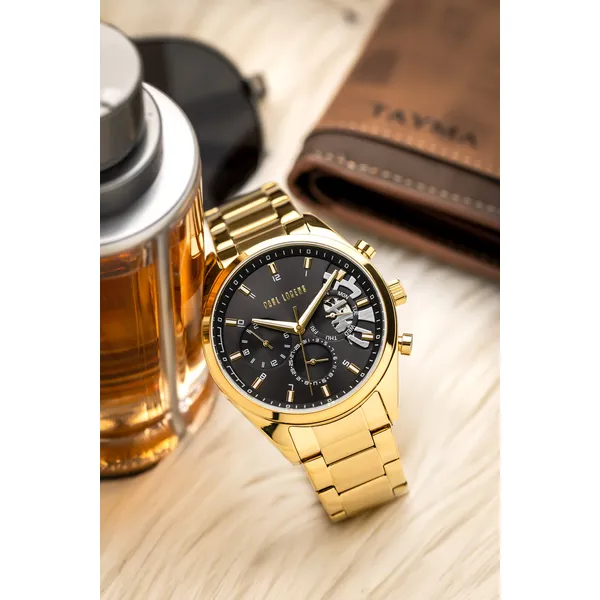 Paul Lorens férfi karóra fekete számlappal, arany acél szíjjal