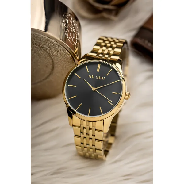 Paul Lorens férfi karóra fekete számlappal, arany acél szíjjal