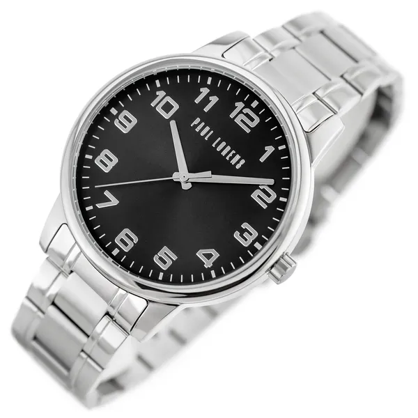 Paul Lorens férfi karóra fekete számlappal, ezüst acél szíjjal