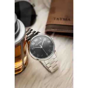 Elegáns, fekete számlapos férfi karóra rozsdamentes acél szíjjal, amely üzleti és hétköznapi öltözékhez is könnyen illeszthető. A japán Miyota kvarc szerkezet megbízható működést biztosít, a díszdoboz és ajándéktáska pedig azonnal ajándékozhatóvá teszi.