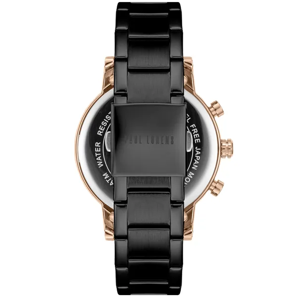 Paul Lorens férfi karóra fekete számlappal, rozéarany acéltokkal
