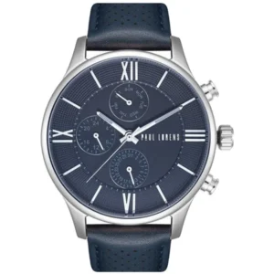 Paul Lorens férfi karóra, kék bőr szíj, ezüst 45 mm tok, dátum, ajándékbox
