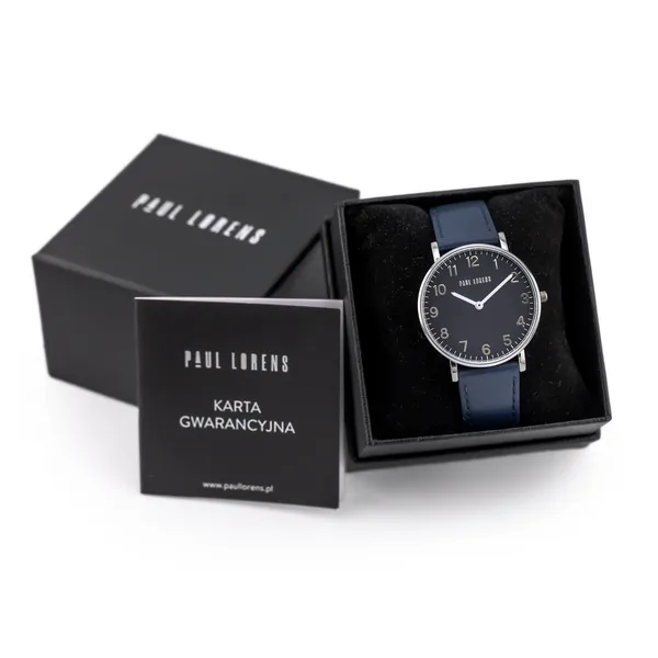 A Paul Lorens PL11989A5-6F1 férfi karóra az elegáns megjelenést és a megbízható működést ötvözi. Olasz ihletésű dizájnja, gondos kidolgozása és minőségi anyaghasználata miatt kiváló választás mindennapi viseletre és alkalmi öltözékhez is. A kék számlap, az ezüstszínű tok és a kék bőrszíj harmonikus, kifinomult összhatást teremt.