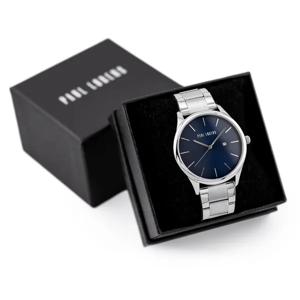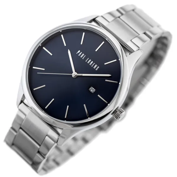 Paul Lorens férfi karóra, kék számlap, ezüst fém szíj, 44 mm
