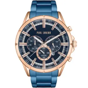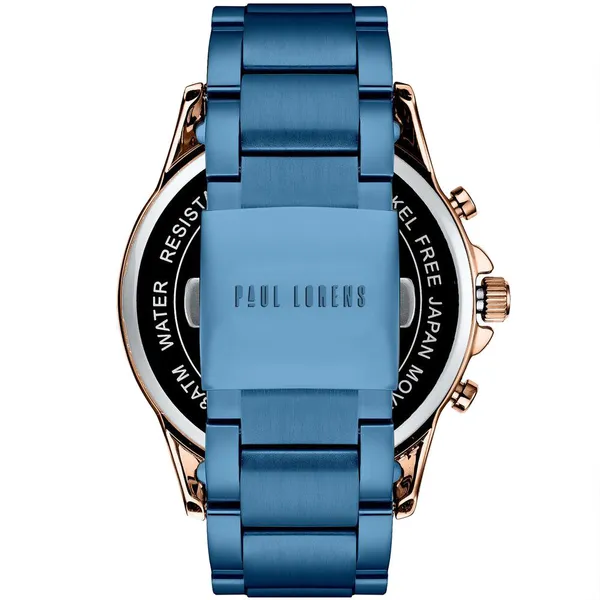 Paul Lorens férfi karóra, kék számlappal, fém szíjjal, 47 mm