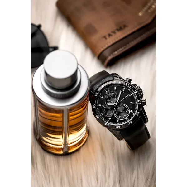 • Színek: fekete számlap és tok, ezüst indexek, fekete szíj