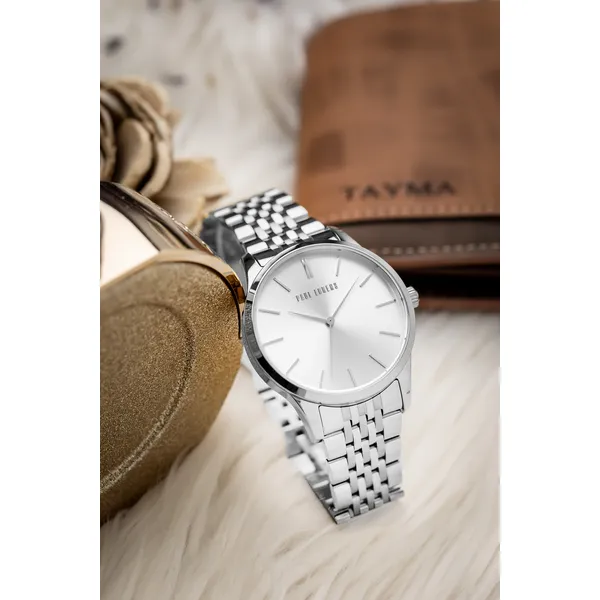 Elegáns, ezüstszínű kivitele és rozsdamentes acél szíja stílusos megjelenést ad a mindennapokra és alkalmakra is. A megbízható japán kvarc szerkezet, az ásványi üveg és az ajándék díszdoboz praktikus, értékes választássá teszi.