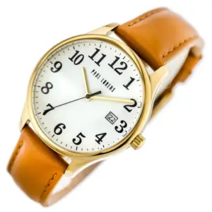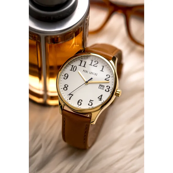Paul Lorens férfi kvarc karóra, fehér számlap, bőrszíj, arany tok