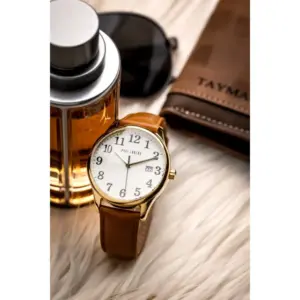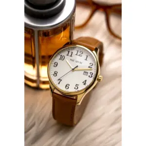 Elegáns, mindennapi viseletre is kényelmes férfi karóra japán kvarc szerkezettel, dátumkijelzéssel és bőrszíjjal. Letisztult megjelenése, aranyszínű tokja és ajándék díszdoboza különösen jó választássá teszi saját használatra vagy ajándékba.