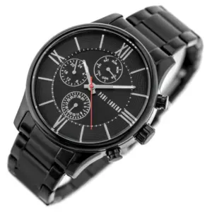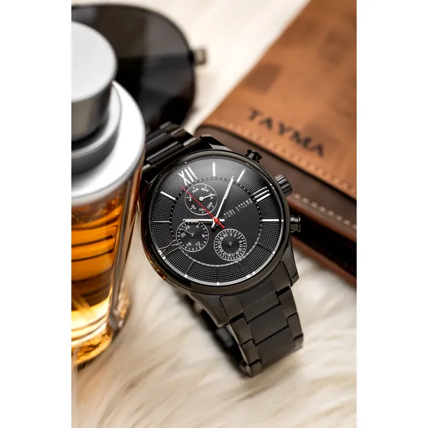 Elegáns, fekete kivitelű férfi karóra megbízható japán kvarc szerkezettel, kényelmes fém szíjjal és praktikus dátumkijelzéssel. Az ajándék díszdoboz és táska miatt azonnal átadható stílusos meglepetésként is.
