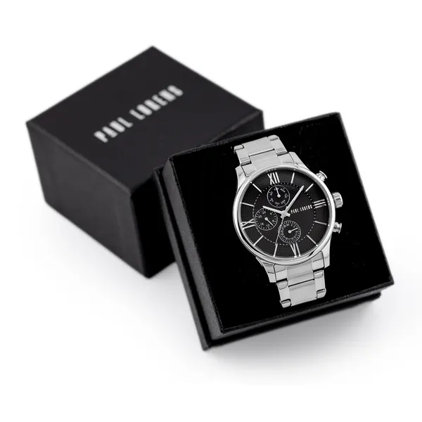 Paul Lorens férfi kvarc karóra fekete számlappal, ezüst fém szíjjal
