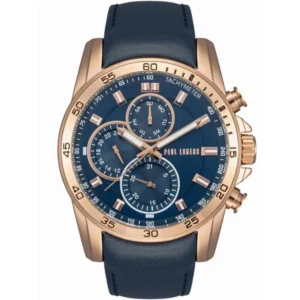 A Paul Lorens férfi karóra a klasszikus olasz eleganciát és a modern technológiát ötvözi. A japán Miyota 2115-3 kvarc szerkezet pontos időmérést garantál, míg az IPS bevonatú rózsaarany tok és a puha, kék valódi bőrszíj luxus megjelenést biztosít. A 47 mm-es, ásványi üveggel védett kerek számlapot rózsaarany indexek díszítik, a 24 órás segédszámlap és a dupla dátumkijelzés pedig extra kényelmet ad.
