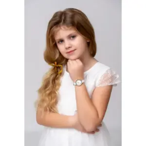 Elegáns, könnyen hordható gyerek karóra megbízható japán kvarc szerkezettel, kényelmes fehér bőrszíjjal és antiallergén bevonattal. A díszdobozzal és ajándéktáskával együtt remek választás ünnepekre vagy hétköznapi viseletre.