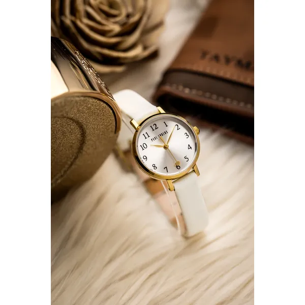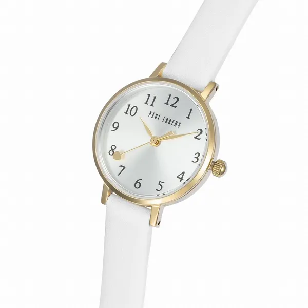 Paul Lorens lány karóra, fehér bőrszíj, arany tok, 30 mm