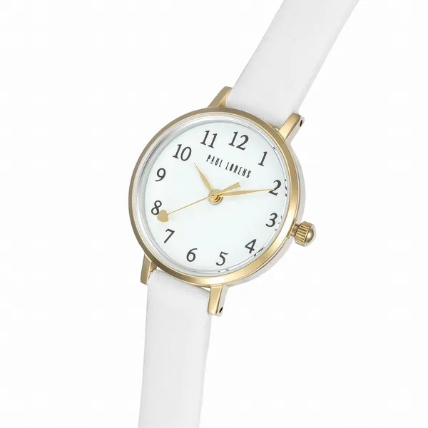 Paul Lorens lány karóra, fehér bőrszíj, arany tok, 30 mm