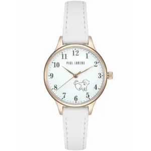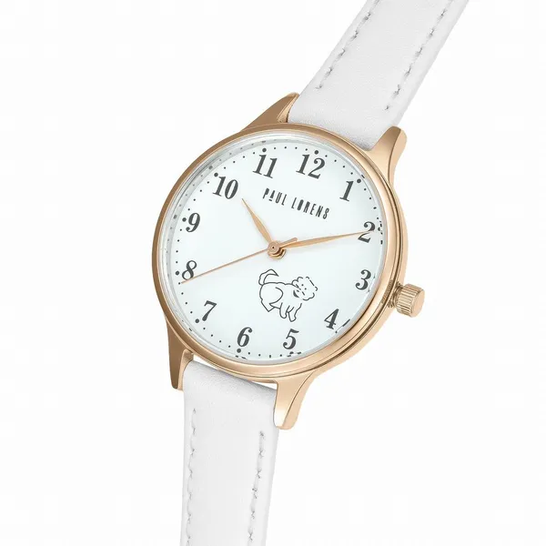 Paul Lorens lány karóra fehér bőrszíjjal, kutyás számlappal