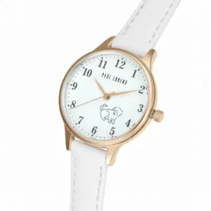 A Paul Lorens gyermek karóra kiváló anyaghasználattal, precíz kidolgozással és bájos, gyerekeknek szánt megjelenéssel készül. A fehér számlapon látható kutyás motívum játékos karaktert ad az órának, míg a rózsaarany színű tok és a fehér bőrszíj elegáns, könnyen viselhető összhatást teremt. Praktikus és szép választás a mindennapokra vagy ajándéknak.