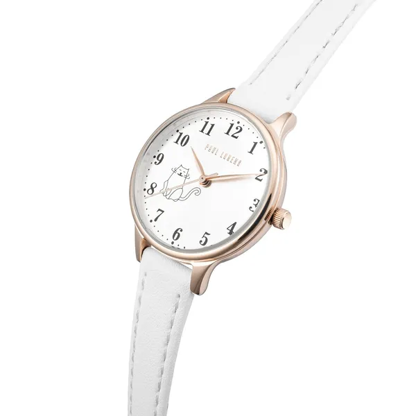Paul Lorens női кварц karóra, fehér bőrszíj, rózsaarany tok