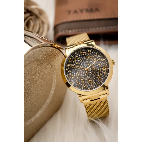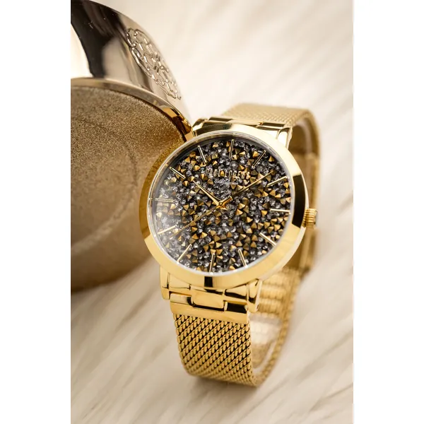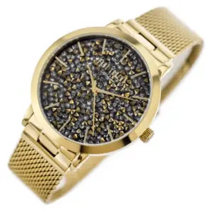 Elegáns, aranyszínű mesh karkötővel és fekete, cirkóniadíszes számlappal készült modell, amely kifinomult megjelenést ad a mindennapokban és alkalmi viselethez is. A japán кварc szerkezet, a nemesacél kivitel és az ajándék díszcsomagolás praktikus és stílusos választássá teszi.