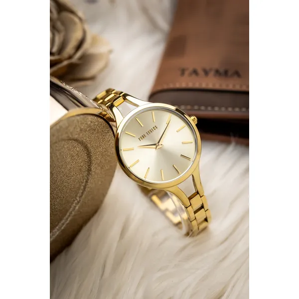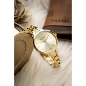 Elegáns, aranyszínű női karóra megbízható japán kvarc szerkezettel és kényelmes fém szíjjal. Antiallergén bevonata és ajándék díszdoboza miatt praktikus és stílusos választás mindennapi viselethez vagy ajándéknak.