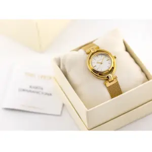 Elegáns, aranyszínű női karóra ezüst számlappal, amely könnyen kombinálható hétköznapi és alkalmi öltözékkel. A japán kvarc szerkezet, a rozsdamentes acél szíj és az ajándék díszdoboz praktikus, stílusos választássá teszik.