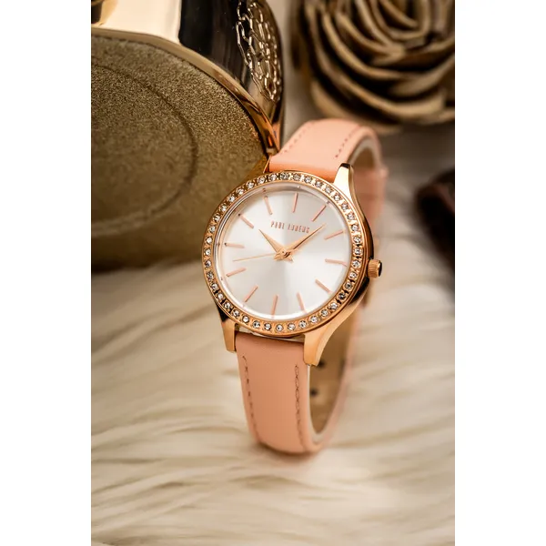 Elegáns, nőies karóra ezüst számlappal, rózsaszín bőrszíjjal és rózsaarany színű, cirkóniás tokkal. A japán Miyota szerkezet, az ásványi üveg és az ajándék díszdoboz praktikus és stílusos választássá teszi.