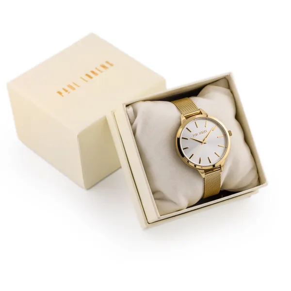 Paul Lorens női arany hálós karóra ezüst számlappal 38 mm
