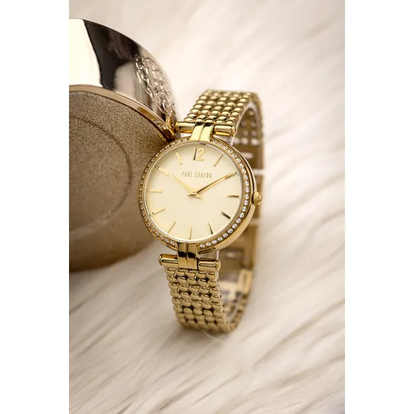 Paul Lorens női arany karóra, cirkóniás tok, acél szíj, 36 mm