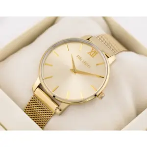 Elegáns, arany színű női karóra vékony tokkal és kényelmesen állítható fém szíjjal, amely tökéletes választás mindennapi és alkalmi viselethez. A megbízható japán kvarc szerkezet, az antiallergén bevonat és az ajándék díszdoboz még vonzóbbá teszi.