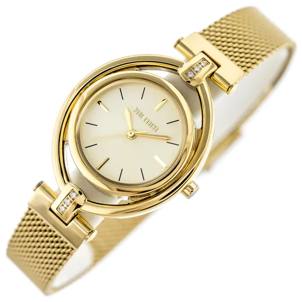 Elegáns, arany színű női karóra pontos kvarc szerkezettel, tartós rozsdamentes acél szíjjal és kényelmes, antiallergén bevonattal. Letisztult megjelenése könnyen kombinálható, a díszdoboz és az ajándéktáska pedig tökéletes ajándékká teszi.