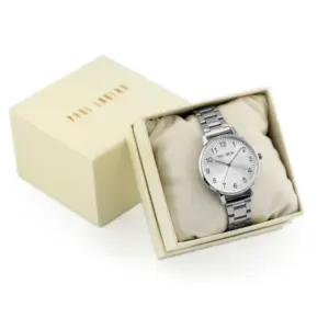 Elegáns, ezüst színű női karóra japán kvarc szerkezettel és kényelmes fém szíjjal, amely megbízható társ a mindennapokban. Letisztult megjelenése, antiallergén bevonata és ajándék díszdoboza különösen vonzó választássá teszi.