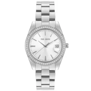 Paul Lorens női ezüst kvarc karóra, ásványi üveggel, cirkóniákkal