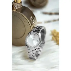Elegáns, ezüstszínű női karóra japán kvarc szerkezettel, amely pontos működést és kényelmes mindennapi viseletet kínál. A cirkóniákkal díszített tok és az ajándék díszdoboz különösen jó választássá teszi ünnepi alkalmakra és ajándékozáshoz.
