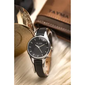 Elegáns női karóra fekete bőrszíjjal, ezüstszínű tokkal és letisztult fekete számlappal, amely könnyen kombinálható hétköznapi és alkalmi öltözékhez. A japán кварc szerkezet, az ásványi üveg és az ajándék díszdoboz praktikus és stílusos választássá teszi.